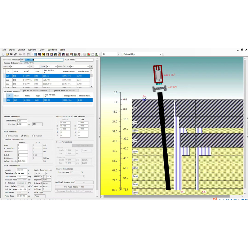 功能強,用戶界面友好。新增加的功能提高了樁身應力、承載力、錘擊數和打樁時間的預測精度。