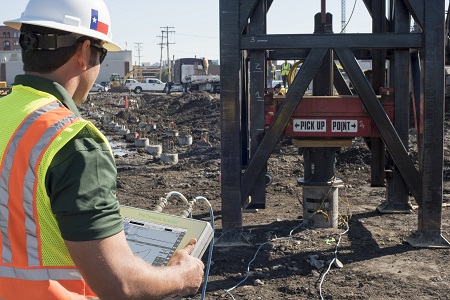 鉆孔灌注樁高應變測試時,為了測試質量通常要對樁頭進行接樁與開挖處理,這不僅增大了測試難度且提了人工成本與時間成本,降低了測試效率。針對此種情況,PDI公司研發(fā)了高應變樁頂測力裝置,此裝置配合打樁分析儀PDA-8G、PDA-DLT使用時,可提力測量的精度,并降低經(jīng)濟成本。力的測量可以通過力傳感器、載荷傳感器或在錘上安裝加速度傳感器實測得到。